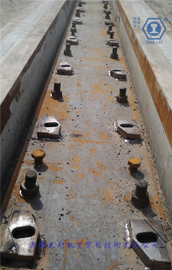 THRAIL9120/15/38柔性轨道压板部件采用低合金高强度结构钢制作。螺栓为M20*48mm,8.8级高强度螺栓,拧紧力矩为:256N.m,可承受最大侧向力为:120KN。